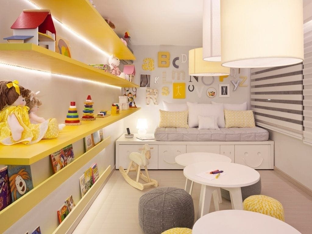 Evitare sempre spot orientati che possono causare riflessi fastidiosi, predisporre un sistema di illuminazione “mobile” con un numero adeguato di prese sparse per la stanza. In questo modo sarà più semplice modificare l’illuminazione a seconda delle esigenze e alimentare velocemente, e all’occorrenza, applique a braccio, piantane o lampade da tavolo: gli apparecchi illuminanti ideali per la camera dei bambini.