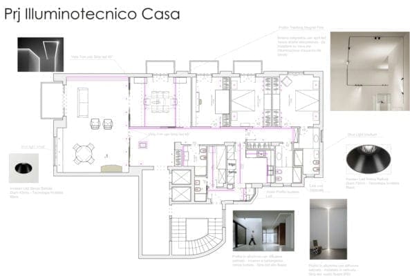 Progetto illuminazione Casa: Il progetto interessa un appartamento privato con concept di luce alternato a tagli luminosi su soffitto e su pareti, che illuminano in maniera originale e diretta gli spazi domestici, risaltandone le principali funzioni.