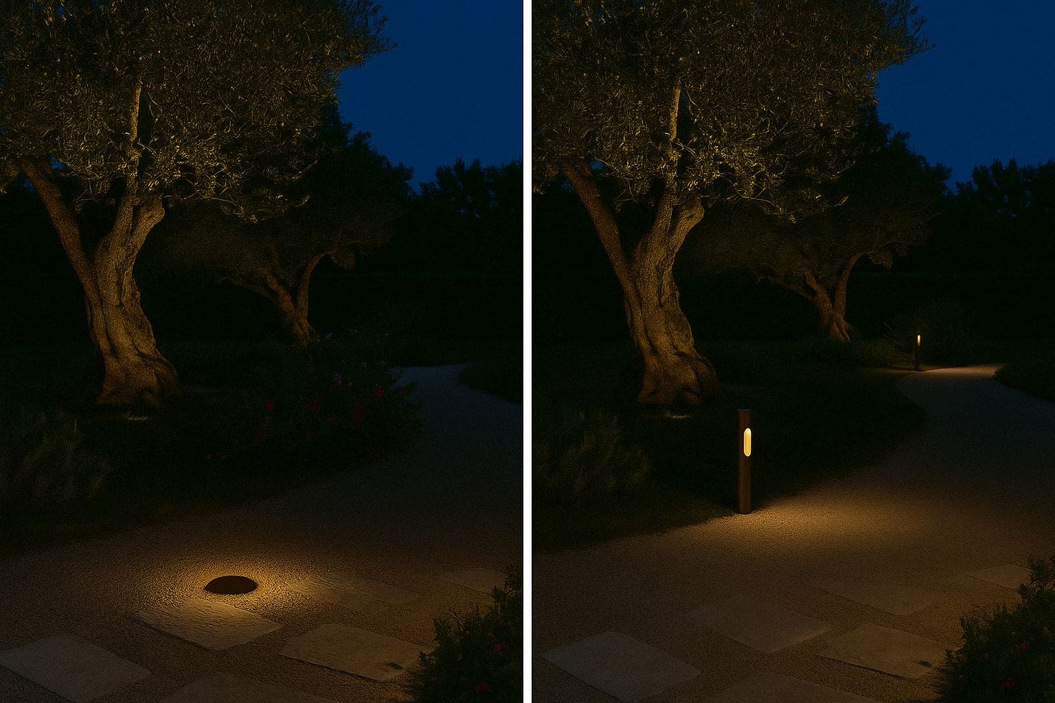 ✨ “Quando illumini un ulivo secolare, non pensare solo alla quantità di luce, ma alla direzione e alla qualità dell’effetto. Una luce troppo forte o mal posizionata può appiattire la texture del tronco o creare ombre innaturali.