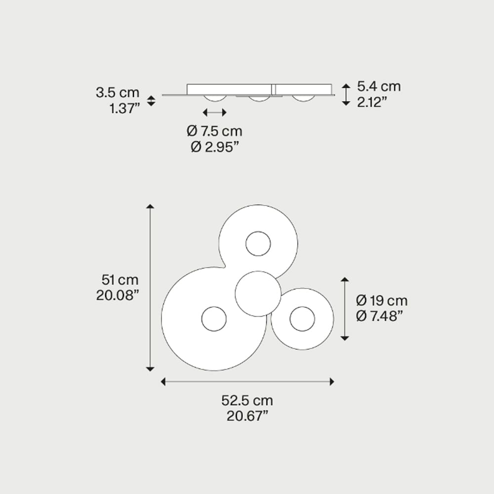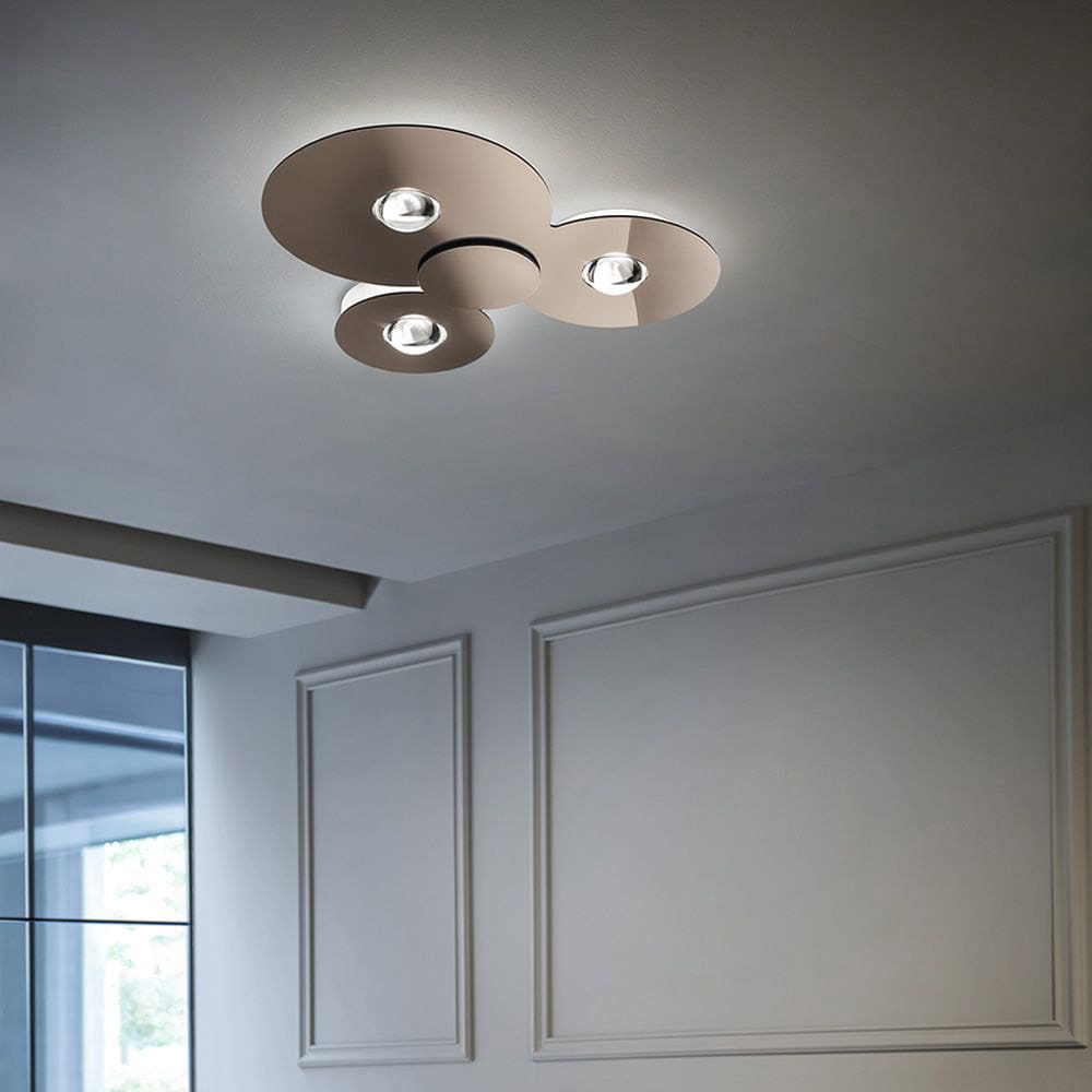 Bugia Triple by Lodes, designed by Andrea Tosetto, stands out for its compact and refined design, featuring rounded shapes that draw attention. At its center, a light shines like a precious gem, surprising users with its unique lighting effect when switched on. Bugia offers a harmonious balance between direct and indirect light, illuminating both downwards and towards the ceiling, creating a cozy and inviting atmosphere.