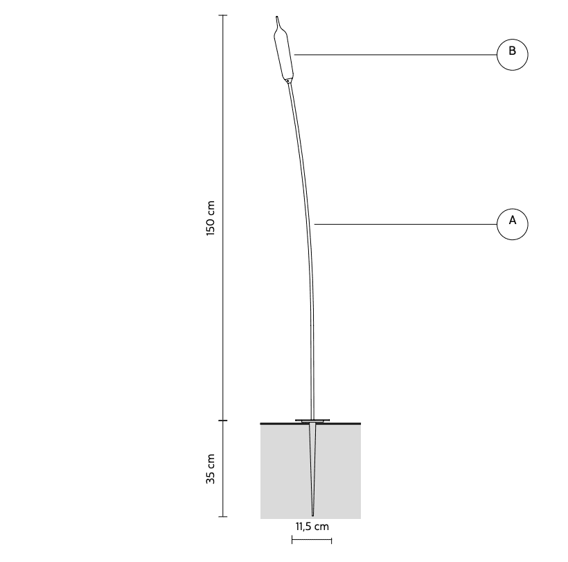 Nilo is a delicate collection for indoors or outdoors: a slender, flexible aluminum stem on top of which is a matt white resin diffuser, a source of light. For interiors it is available in the single floor version, or in the composition of five elements of three different heights that rest on an oval or rectangular base in matt black metal. For outdoor use only, also in the picket and applique versions.