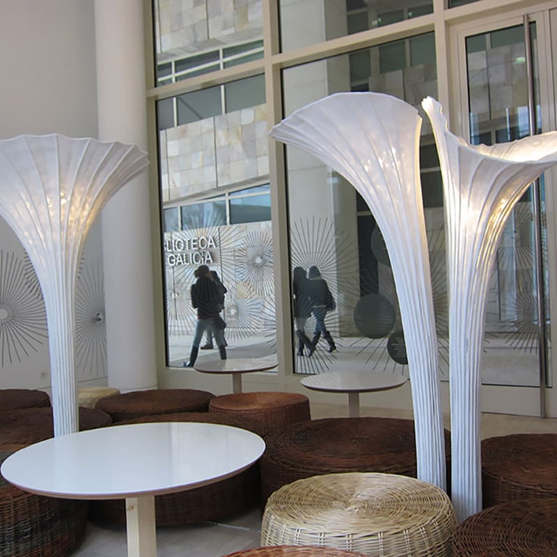 The majestic and elegant Africa floor lamp was designed by Arturo Alvarez for the “a-emotional light” brand. Africa is an exuberant floor lamp of imposing height and sculptural volume. Its smooth, solid skin, made of painted stainless steel mesh, lets light escape as it rises in a ray shape through the conical structure to fully expand at the top.