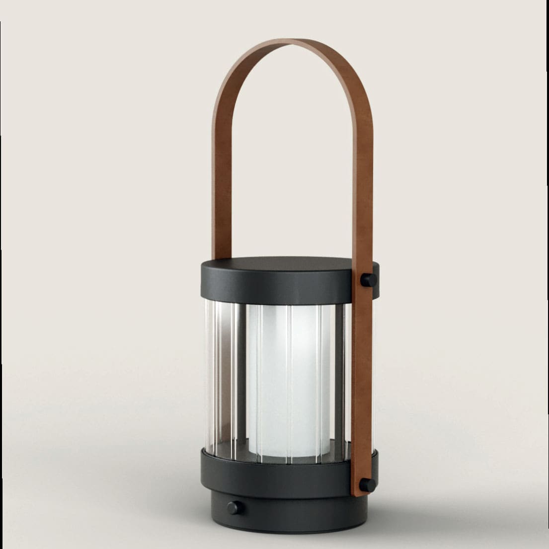 The Bally portable table lamp, designed by AC Studio for the Aromas del Campo brand, represents an elegant fusion of design and functionality. This portable lamp, with its matte black steel finish, embodies a modern and refined aesthetic. Bally is the modern answer to the classic lantern lamp. The traditional look has been maintained, from the elegant cylindrical shape and transparent glass inserts to the long and graceful eco-leather handle. However, the lantern has been updated with modern lighting technology which gives it greater functionality.