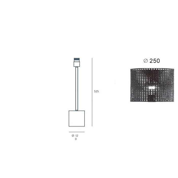 Light source: LED E27 MAX 60W (non incluso) 220-240 V, 50/60 HZ, A ++. – Dimensions: 12 cm – P. 12 cm – H. 52,3 cm . Paralume Ø. 25 cm – H. 24 cm