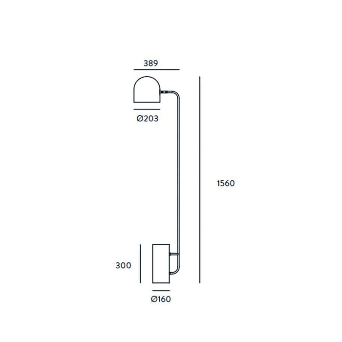 Light source: Max. 60W E27 (not included) – 220-240V – IP20. Dimensions: L 20,3 cm W 38,9 cm H 156 cm