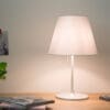 Melampo Notte by Artemide, designed by Adrien Gardère, is a table lamp that combines elegance and functionality. Its refined design features a tiltable and rotatable diffuser, adjustable by 30° and up to 360°, offering versatile lighting for reading or creating cozy atmospheres. A built-in switch, conveniently located on the arm, allows easy control of the light. Crafted with a diffuser in satin fabric or synthetic parchment and a painted aluminum structure, Melampo Notte is available in gray and satin bronze finishes. With its adjustable light and elegant design, it is the perfect lighting solution for bedrooms, living rooms, or workspaces.