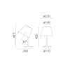 Light source: LED 5W E14 (not included) – 349 lumens – CRI=80 – 220-240V – IP20. Dimensions: Ø 23 cm H 42,5 cm