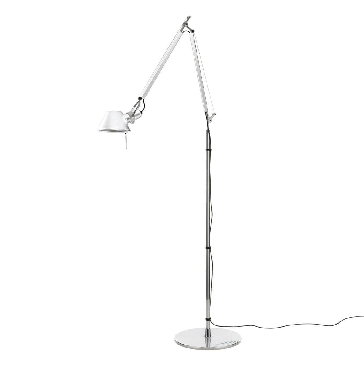 Base and cantilevered arms in polished aluminium; diffuser in matt anodised aluminium; joints and supports in polished aluminium. System of spring balancing.