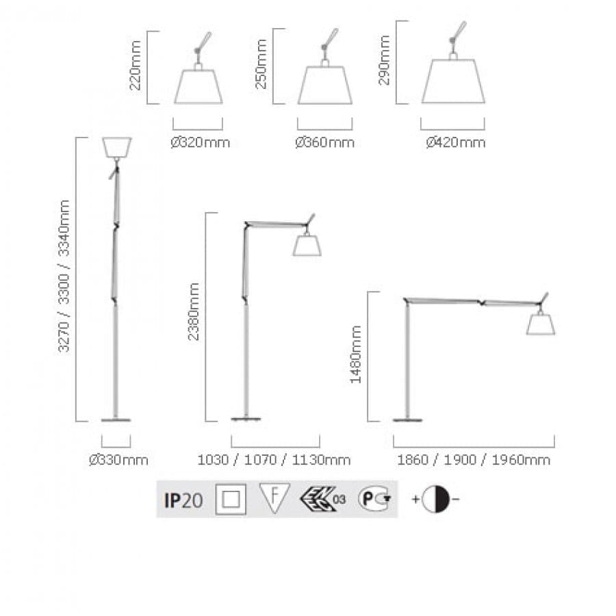 Artemide Tolomeo Mega floor E27 ON-OFF with 36cm parchment paper diffuser