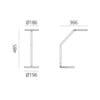 Light source: 8W – 3600K- 675 lumens – CRI=82. Dimensions: L 366 mm H 485 mm Ø base 196 mm