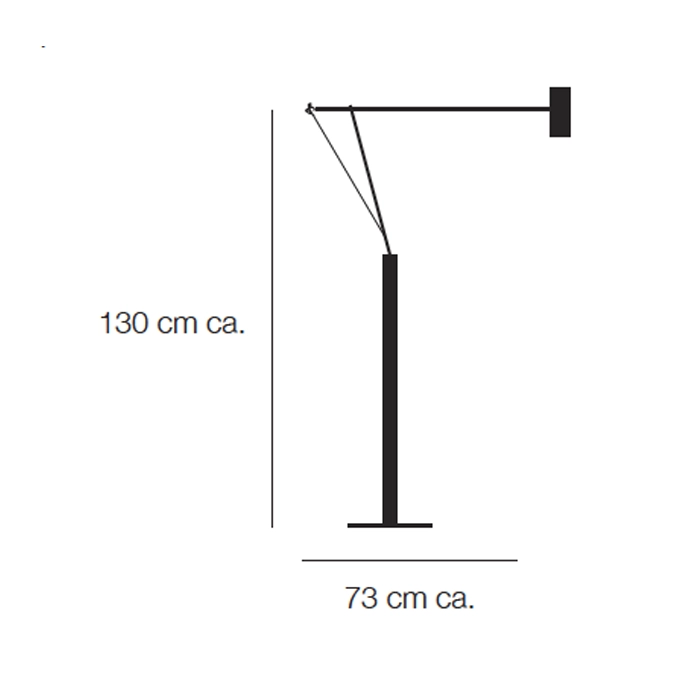 Light source: LED COB 1x10W 2700k – lumens 1440 – CRI80 -110-240V – dimmer included – Dimensions: base 25×25 cm ,H min. 103,165 cm , ledge 73 cm ca.