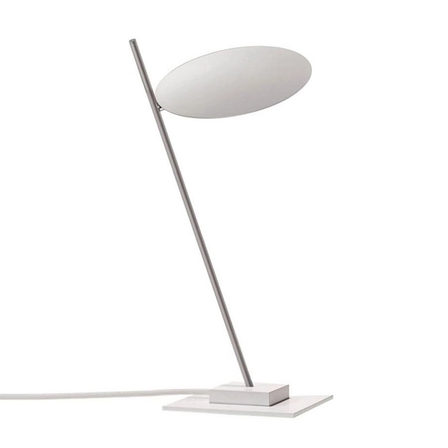 LEDERAM T1 – table – white disc, satin rod, white base