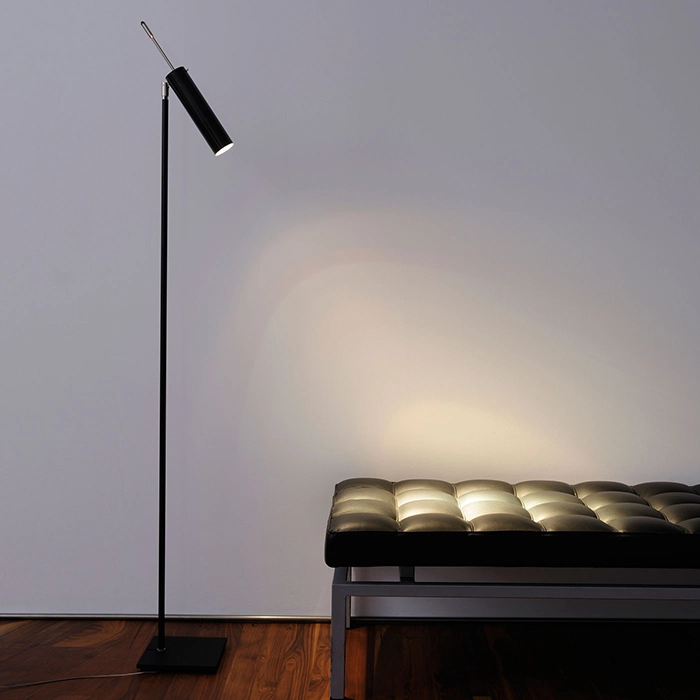 Lucenera was born from a simple concept, that of placing the lamp object in the background, leaving the light as the protagonist according to the illuminated subject. To do this, Enzo Catellani initially used a black carbon tube and a flexible support. The form is as simple as possible. The versatility of the infinite object.