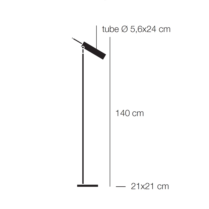 Light source: LED GU10 230V, 1×5,5W, K 3000 – lumens 375 – CRI >90 – 240V – (110V – bulb not included) – dimmable – Dimensions: base 21×21 cm, tube Ø 5,6×24 cm, H 140 cm