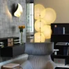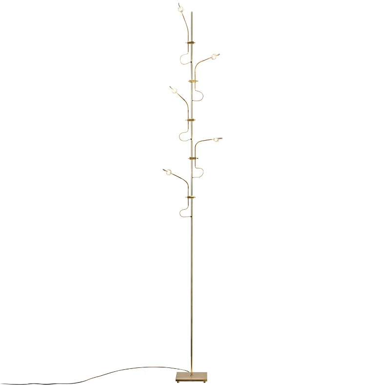 Light source: Interchangeable LED 5x1W @350mA 2700K – lumens 700 – CRI 80 – 110-240V plug driver with floor dimmer. Dimensions: base 20×20 cm, H 190 cm, lenses Ø 32 mm