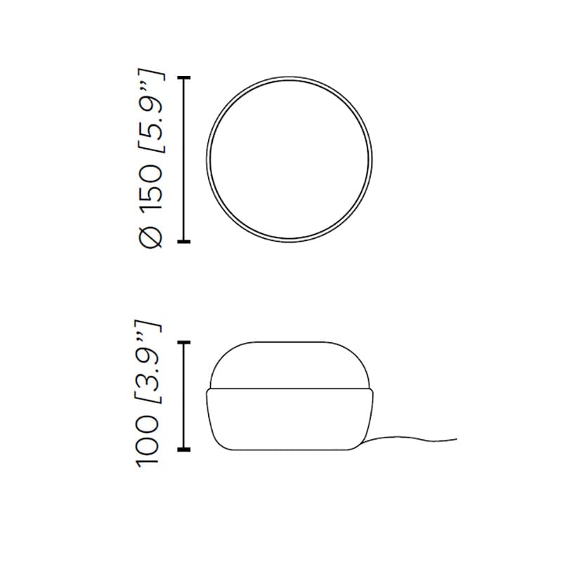 Light source: 1 x 5W Custom LED – 435 lumens – 2700 K – CRI>90 – 220/240 V – Interruttore Dimmable sulla base – IP20. Dimensions: H 100 mm Ø 150 mm