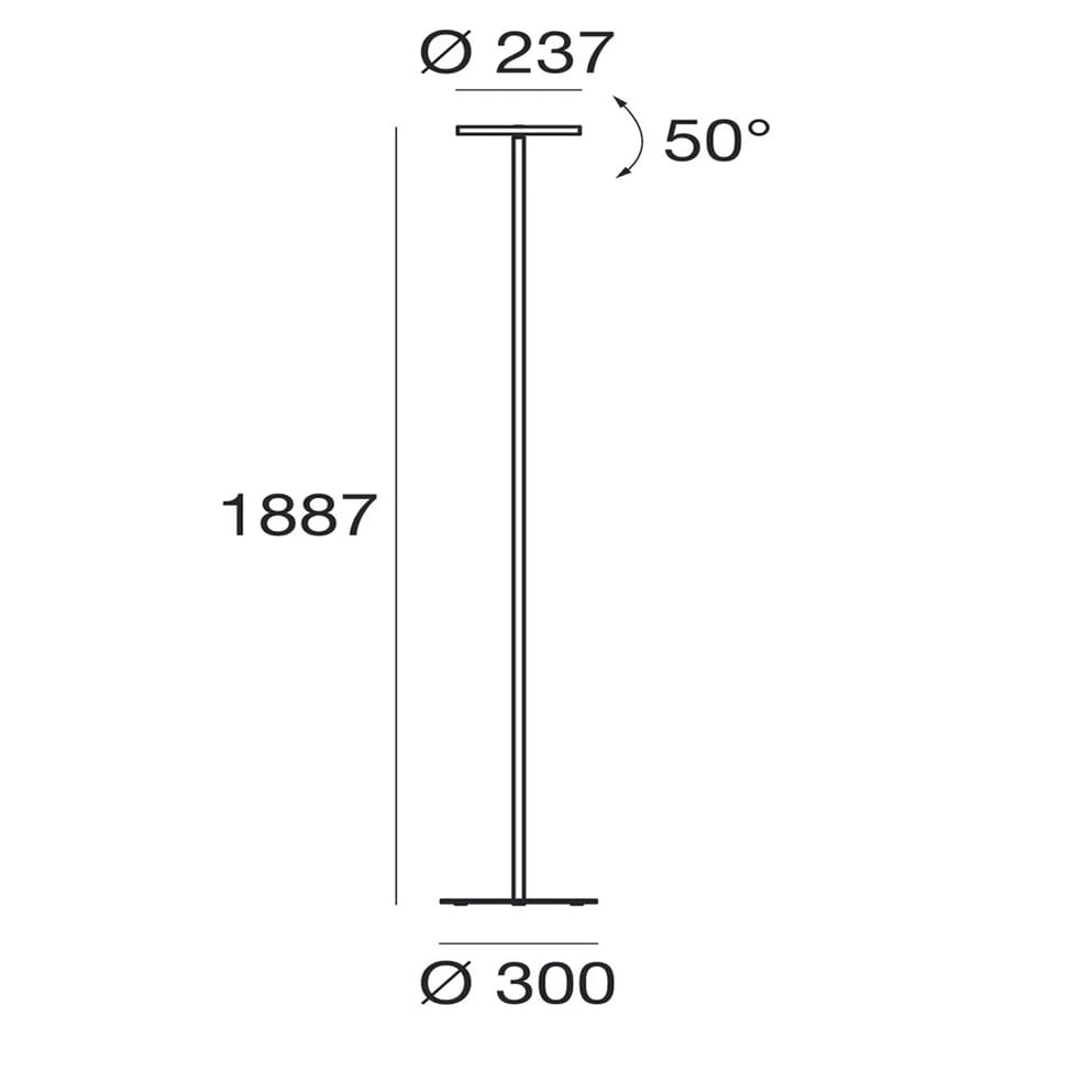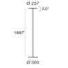 Light source: 1 topLED 25W – 2687 lumens – 3000 K – CRI=80 – 220-240 V – IP20. Dimensions: H 1887 mm Ø 300 mm