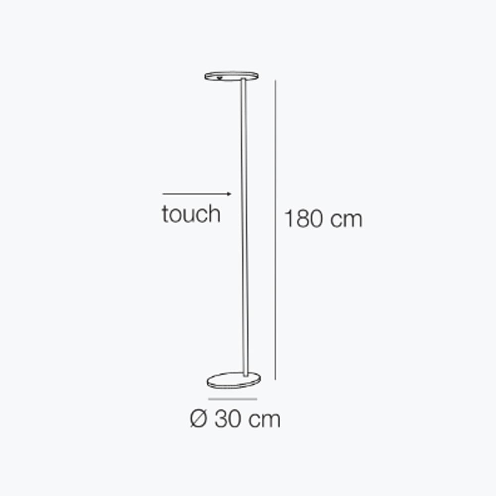 Rondaj is a dimmable touch indirect light floor lamp. The Rondaj floor lamp, designed by ELESI CREATIVE LAB for Elesi Luce s.r.l., illuminates with reflected light, upwards, and direct light, downwards, regulated separately by memory touch dimmers located on the stem. Attentive to visual comfort, the floor lamp is ideal for moments of relaxation. “Rondaj” is an Esperanto term that means «round», a simple shape that contains high-efficiency integrated LED lighting. The diffused light is suitable for enhancing the ceilings and the depth of the space.
