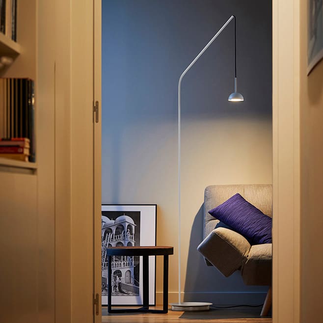 Light source: LED 6,2W 2700K – Ang. 70º – >90 CRI / 350mA – 230V / 725 lumens – Cable on/off switch. Dimensions: Ø 27 cm – P. 54.2 cm – H. 179 cm