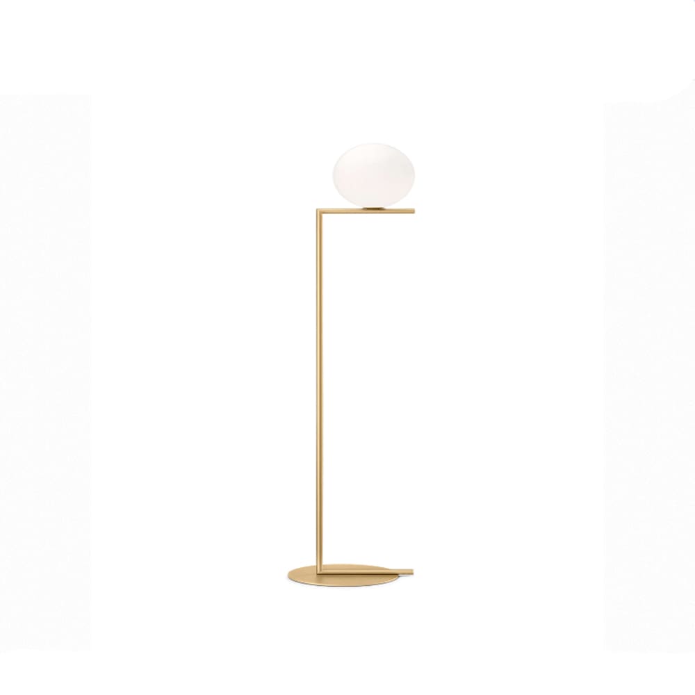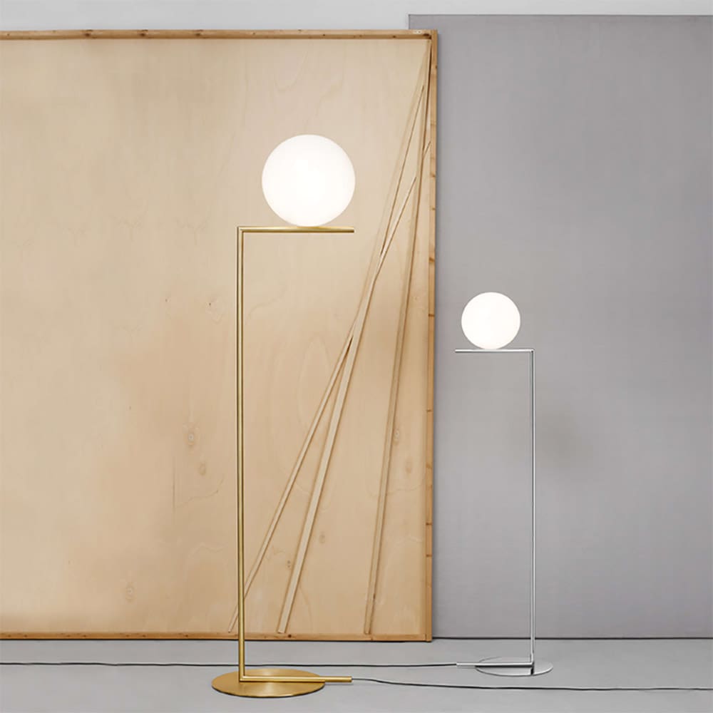 The IC Lights F1 by Flos, designed by Michael Anastassiades, is a floor lamp with diffused light, featuring an elegant and minimalist design. The frame is available in brushed brass with a transparent finish or chrome-plated steel, providing a sleek, modern look. The diffuser is made of mouth-blown opaline glass, emitting soft, even light. The lamp includes a dimmer on the power cable for adjusting light intensity. The opalescent globe delicately balances atop an inclined brass stem, seemingly defying gravity, evoking the image of a juggler’s trick. This graceful balance of sphere and stem adds a touch of magic and elegance to any space. The IC Lights F1 is the perfect addition for a sophisticated and artistic ambiance.
