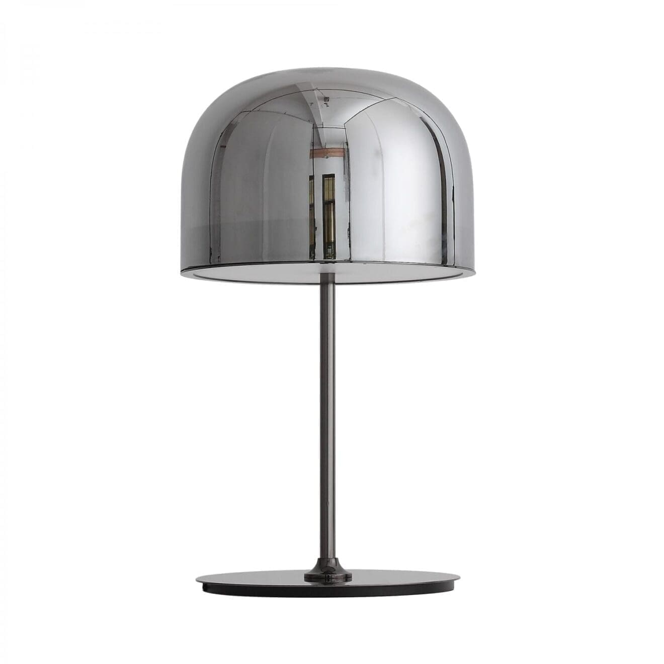 Equatore is a contemporary reinterpretation of the classic lamp with a glass shade. While the traditional abat-jour uses the shade to contain the light source within, in this family of lamps the shade is paradoxically and suggestively empty, with the light being generated by two luminous discs placed inside a central metal band, visible on the shade, that evokes the line of the equator. The light produced by the Leds, thanks to internal screens arranged in layers, is distributed regularly across the surface of the discs, magically illuminating them. The lower disk directs the light output downward, the upper one illuminates the glass cap for a soft, diffused light. Available in table, floor and ceiling models, in two sizes and two colors: a cooler version in gray with a dark chrome frame, and a warmer version with a transparent dove gray cap and a copper-colored frame.