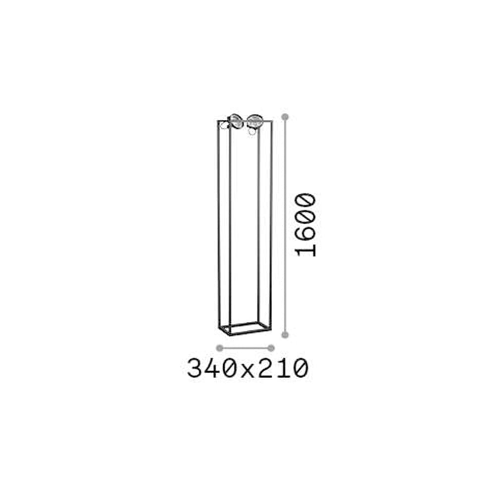 Light source: GU10 max 2 x 50 W ( E14 OLIVA 4W, Bulb included) – 3000 K – 220-240V – CRI=80 – IP20. Dimensions: L 340 mm H 1600 mm W 210 mm