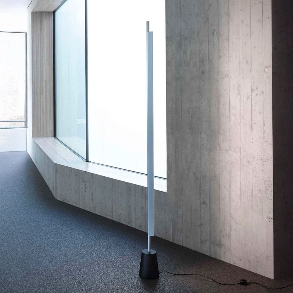 Compendium Terra, designed by Daniel Rybakken for Luceplan, is a floor lamp with a striking graphic and sculptural impact, combining elegance and essentiality. Its slender and minimal silhouette ensures effective and immersive lighting, making it an ideal choice for modern and sophisticated interiors. Equipped with a high-efficiency LED source, Compendium Terra provides diffused illumination, creating a welcoming and refined atmosphere. A distinctive feature of this lamp is its adjustable body, which can rotate freely on its base, allowing the light to be directed towards the wall, thus avoiding direct glare. Available in various finishes, it seamlessly integrates into both residential and contract spaces, making it a perfect solution for those seeking a design-forward yet highly functional lighting piece.