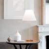 Costanza Table, designed by Paolo Rizzatto for Luceplan, is an iconic table lamp that blends tradition and technology, redefining classic elegance in a modern way. Its interchangeable polycarbonate shade diffuses a warm and cozy light, making it perfect for residential and professional spaces. The telescopic adjustable stem allows users to modify the height, ensuring maximum flexibility in lighting. The on/off version features an easily accessible switch, providing practical and intuitive use. The lightweight aluminum structure, available in various finishes, pairs seamlessly with a selection of shade colors, allowing for customization to match any decor. Costanza Table Lamp is a timeless design piece, suitable for both classic and contemporary interiors, delivering refined and functional illumination with a sophisticated touch.