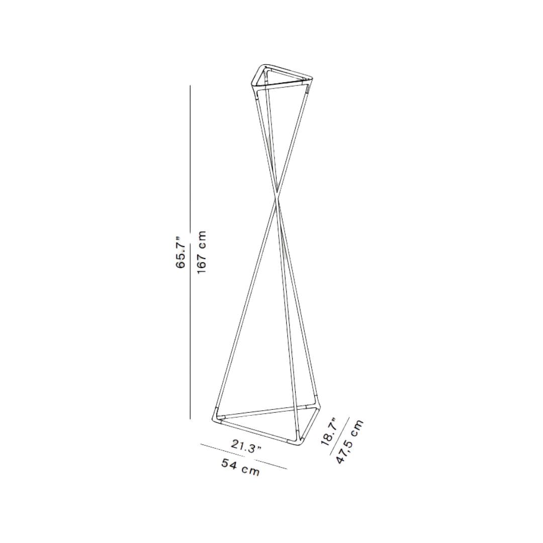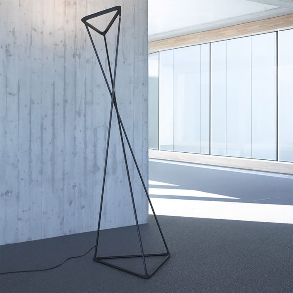 Tango Floor Lamp, designed by Francisco Gomez Paz for Luceplan, is an innovative indirect light floor lamp featuring a dynamic and fluid design. Built on a sturdy triangular steel base, its structure consists of three movable aluminum rods connected by elastomer joints, allowing for a smooth torsional motion. This mechanical movement extends to the triangular reflector at the top, enabling customizable light direction. Thanks to its flexibility and sleek aesthetics, Tango seamlessly integrates into modern and contemporary spaces, providing versatile and functional lighting. Perfect for living rooms, offices, and contract environments, this lamp combines technology, design, and minimalism, creating a sophisticated and cozy atmosphere.