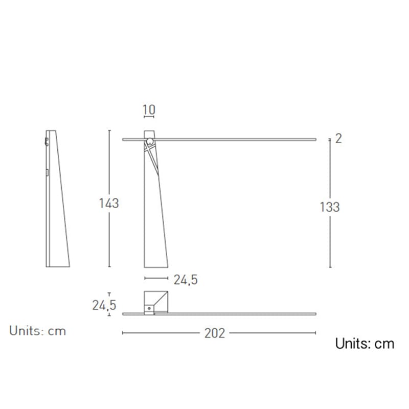 Light source: LED SMD (included) – arm 36w – 3000k – 110/120-or-220/240V – 3240 lumens – CRI>90 – IP20 – PUSH dimmer included . Dimensions: L body: 24,5 cm arm: 202 cm / W body: 24,5 cm arm: 2 cm / H body: 143 cm arm:2 cm