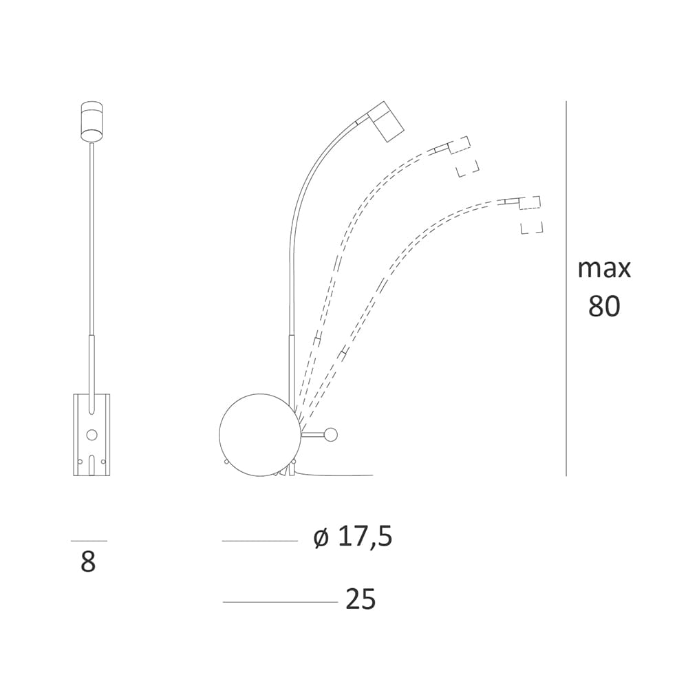 Light source: LED (included) – 11W – 2700k – 220/240V – 1000 lumens – CRI>90 – IP20 – . Dimensions: L 25 cm W 8 cm H 80 max cm