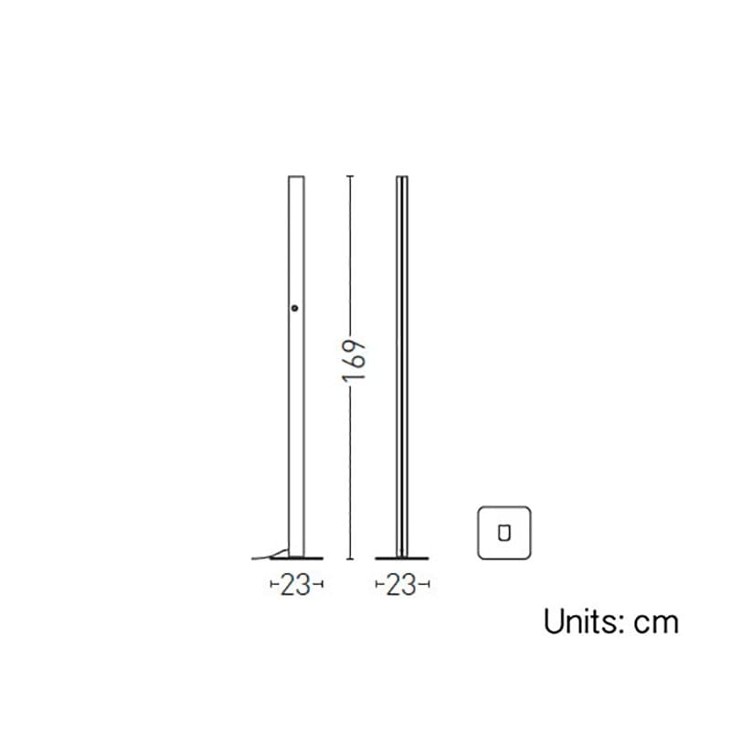 Light source: LED SMD (included) – 34 w – 3000k – 220/240V o 110/120V – 4080 lumens – CRI>90 – IP20 – dimmer included . Dimensions: L body 6,5 cm base 23 cm W body 4,5 cm base 23 cm H 169 cm