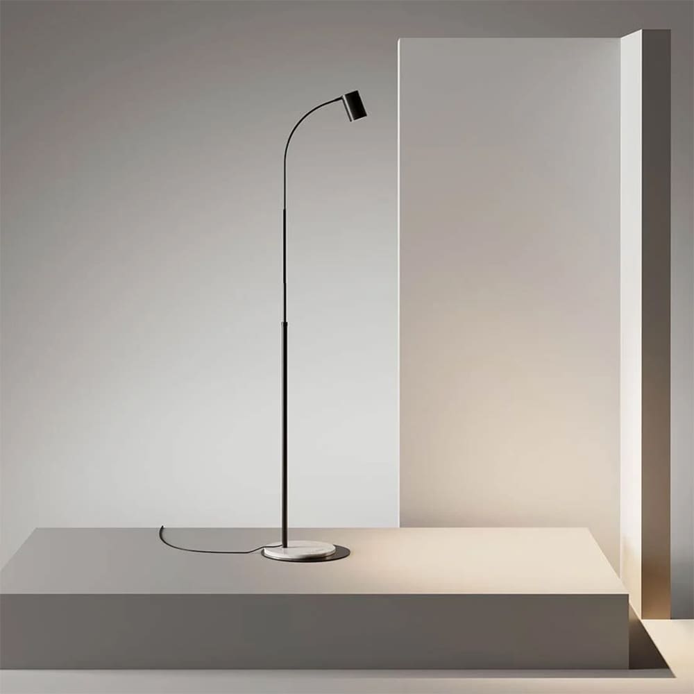 Luxsi is a lamp composed of a vertical telescopic rod, slightly curved at the top which allows you to direct the lighting body and position it at different heights from the ground. Designed by AHLUX for the Lumen Center brand. Black and White FT finishes with circular base in white Carrara marble. Like a cuirassier on guard, alert and motionless. Handsome, present, tall. It draws inspiration from the sun for its harmonious, balanced and natural light.
