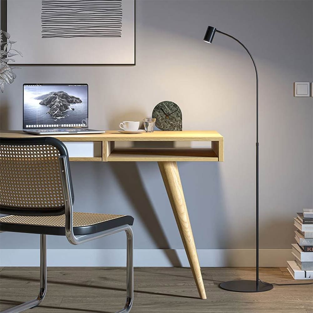Luxsi reading, designed by AHLUX and produced by the Lumen Center brand, is conceived as a reading lamp. Composed of a vertical rod slightly curved at its top, it allows you to direct the lighting body allowing for optimal reading from a desk or sofa. Black and White FT finishes. Like a cuirassier on guard, alert and motionless. Handsome, present, tall. It draws inspiration from the sun for its harmonious, balanced and natural light.