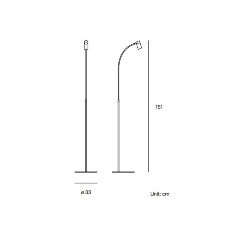 Light source: LED (included) – 15W – 2700K – 220-240V – 1400 lumens – CRI>97 – Foot Dimmer included . Dimensions: H 161 cm Ø 33 cm