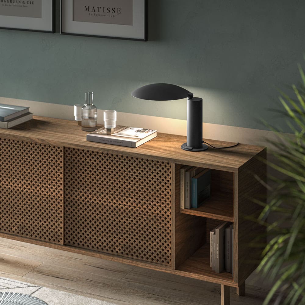 WASHINGTON is a table lamp designed in 1983 by architect Jean-Michel Wilmotte for the French Embassy in Washington DC., it adapts with versatility to any context, from the living room to the office, diffusing a bright and targeted light. Table lamp made of metal and brass composed of an adjustable reflector fixed on a cylindrical body. Integrated LED source with dimmer on fabric cable included. Available in matte black, satin gold or chrome and in the new limited edition brushed copper and satin black nickel finishes created for its 40th anniversary.