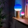 Dipping Light by Marset, designed by Jordi Canudas, is a table lamp that blends craftsmanship with emotional design. The hand-blown glass diffuser features concentric layers of paint, creating a mesmerizing color gradient when illuminated. The cylindrical body is crafted in metal, while the brass base adds a refined touch. When turned on, it emits a warm and enveloping glow; when off, it becomes a sculptural statement piece. Each lamp is unique and exclusive due to its artisanal production. Available in three sizes and various colors, Dipping Light is offered in two versions: wired and portable with a rechargeable battery. Ideal for those looking for decorative lighting that enhances interiors with sophistication and character.