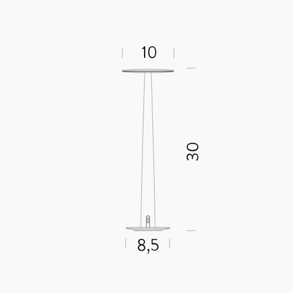 Light source: LED 1,8W – 2700K – 190 lumens – CRI=90 – 5V – Dimmable on board – IP20. Dimensions: H 30 cm Ø 10 cm