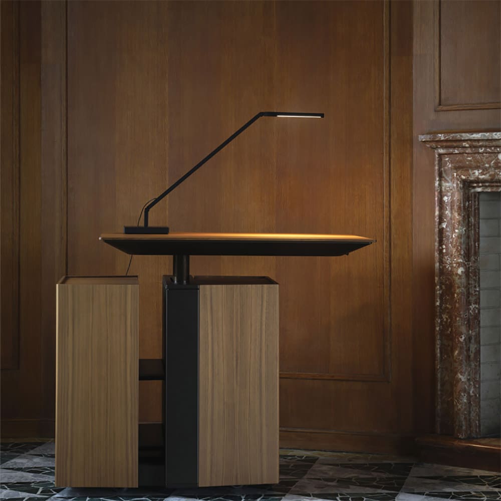 UNTITLED MINI LINEAR è una lampada da tavolo disegnata da Bernhard Osann e prodotta dal marchio Nemo. Progetto di sintesi vincente di meccanica e illuminotecnica. Un design pulito ed essenziale, con snodi miniaturizzati che consentono un’estrema versatilità di movimento. La versione Linear è stata progettata con un’ottica specifica per garantire il massimo comfort visivo negli ambienti di lavoro.