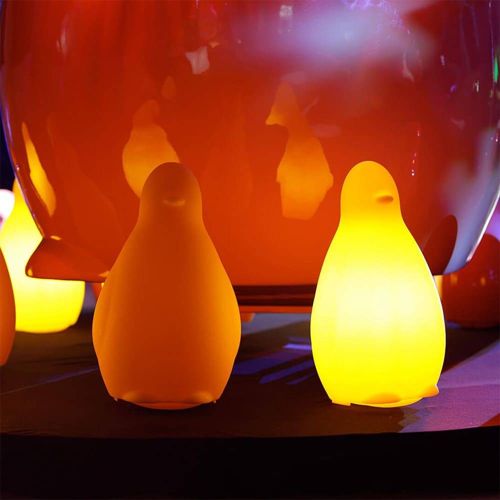 Kokò is a nice penguin-shaped table lamp, born from the fervent creativity of Giò Colonna Romano. Every time it is touched, Kokò swings, imitating the real step of penguins. Kokò is available in many different nuances, ideal for giving a bright and colorful touch to any type of private and contract indoor setting. Also available in the lacquered version, as a non-luminous furnishing accessory.
