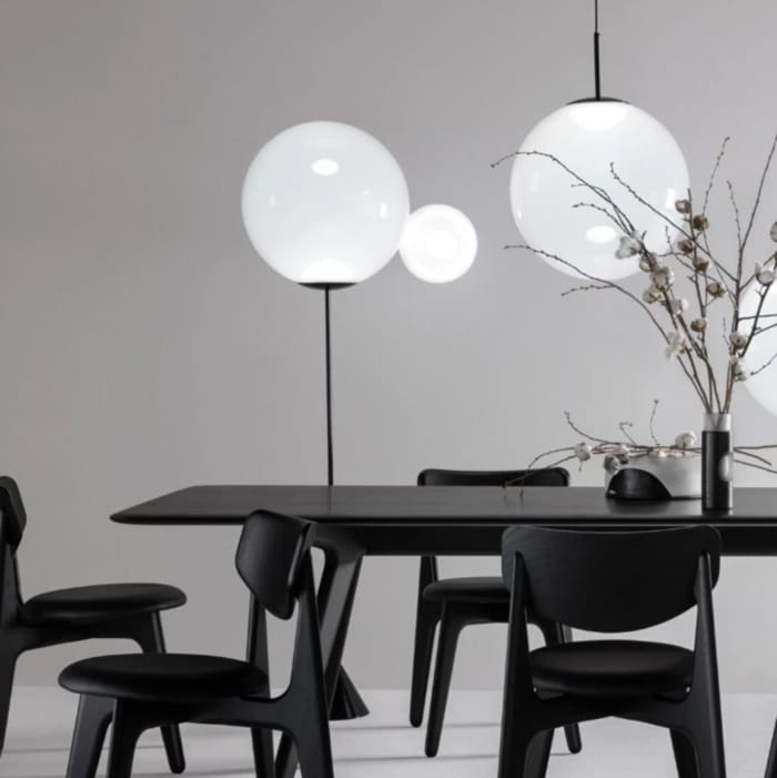 Globe is a collection of lamps designed and produced by the famous Tom Dixon brand. Available in different models and colors. Collection made in polycarbonate. In the continuous search for the purest forms, Globe stands out as the most minimal of the lot. A spherical sphere, highly mirrored and perfectly reflective during the day, when lit reveals a multiplicity of internal reflections from the integrated LED. Also available in a non-metallic opalescent finish.