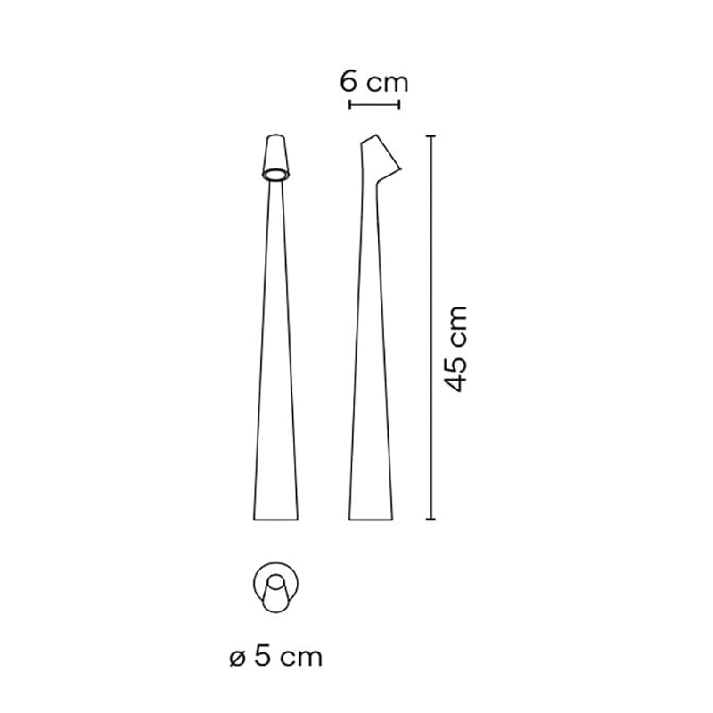 Light source: LED 4,5W 2700K – 520 lumens — Output: DC 5.0 V 2.0 A 10.0W – Input: 100-240V – CRI>90 – not dimmable – Battery capacity 10.000mAh – Battery voltage 3,7V – Rechargeable battery autonomy: 6,5 ore al 100% di intensità – 10 ore al 66% di intensità – 20h al 33% di intensità. Dimensions: H 450 mm L 60 mm