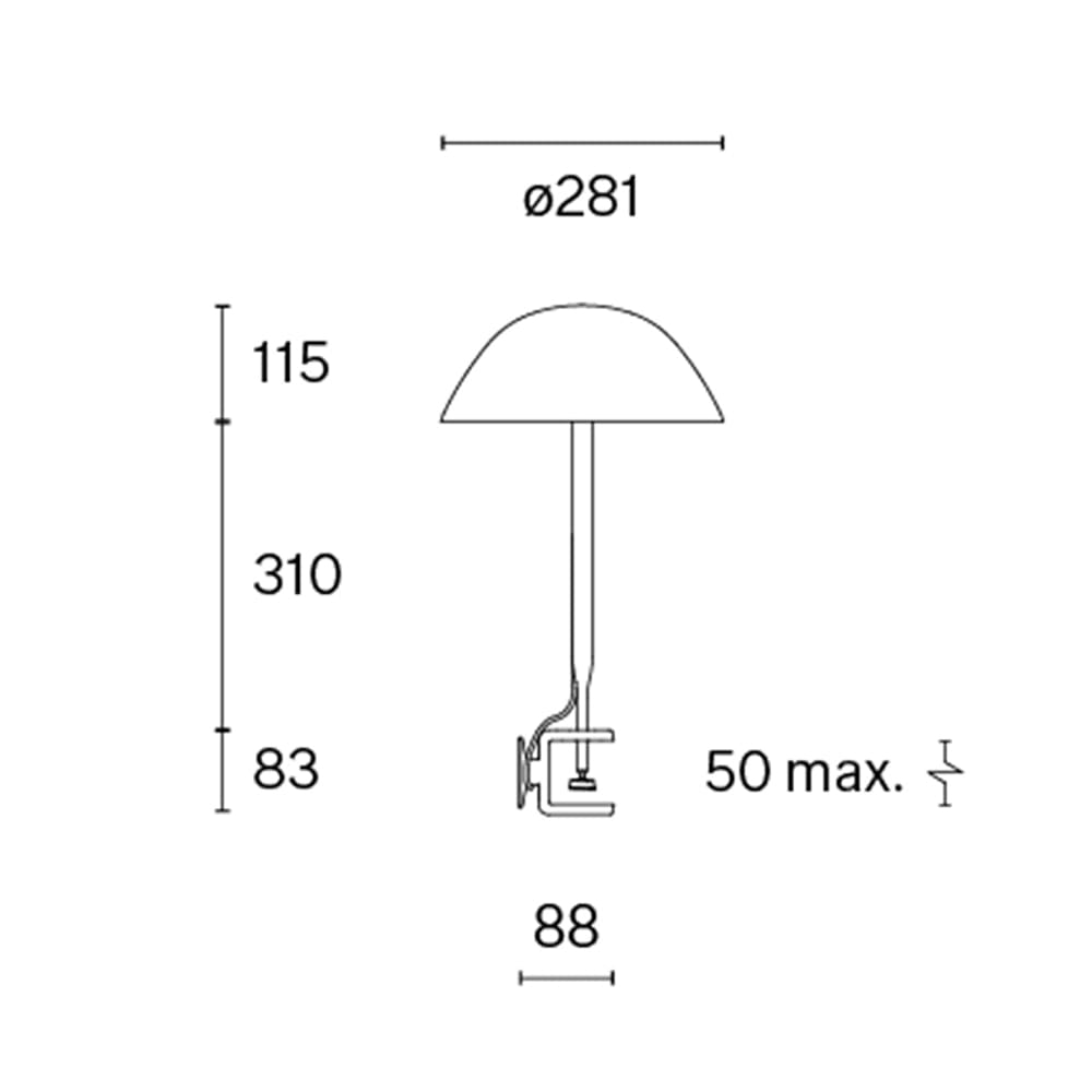 Light source: Integrated LED 8.4 W / 100-240 V / 2700K / Dimmer switch on cord / 414 lumen / IP 20 / CRI=97. Dimensions: H 508 mm Ø 281 mm