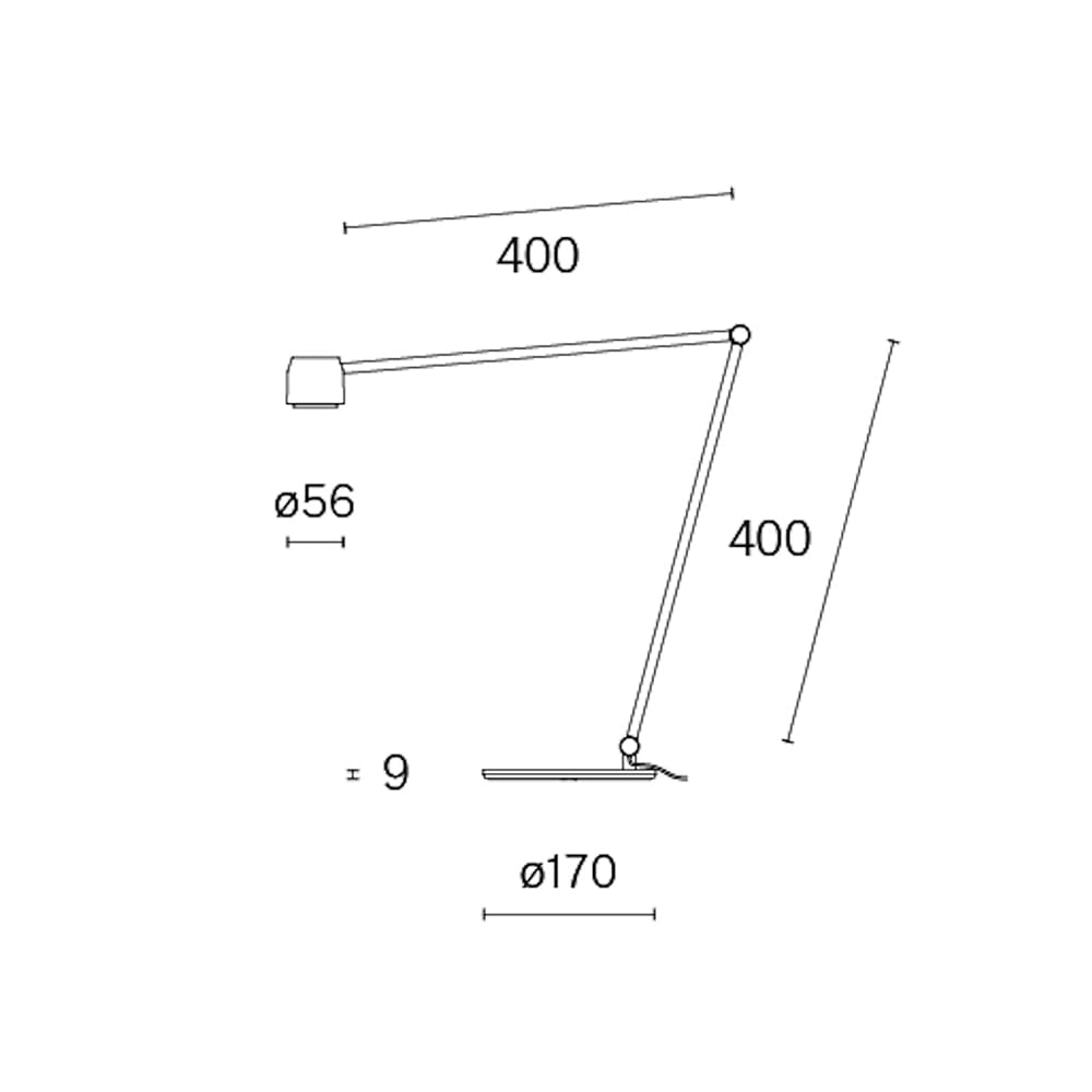 Light source: COB LED (included) 8.2 W 2700k – 100–240V- 497 lumens – dimmable – CRI97 – IP20. Dimensions: Ø 56mm – Ø base 170mm – H 400 mm x L 400mm