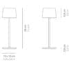 Light source: LED 2,2W – 2200-2700-3000 K – 231-244-252 lumens – CRI>80 – TOUCH DIMMER – 100-240V – battery 5Vdc max 1A – IP65. The charging time is 6 hours and the lithium battery life is 9 hours.
