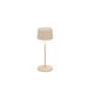 Olivia micro is a battery-powered, portable and rechargeable table lamp. In the upper part of the head there is a “touch” control, which allows switching on, adjusting the light intensity and selecting the color temperature of the light between 2200K, 2700K and 3000K. Olivia micro also has the dimming setting memory function, which memorizes the dimming steps. Thanks to a high protection index, the lamp can also be used outdoors. It is equipped with a contact charging base; charger included. Charging time at 1A is 4.5 hours and battery life is approximately 9 hours at full power.