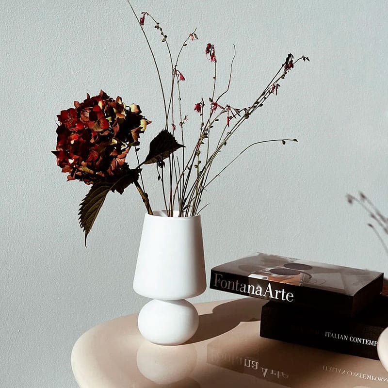 Pack of 4 pieces of Fontana Vaso, designed by FontanaArte Design Lab, is a refined artistic mouth-blown vase, inspired by the iconic lampshade model 1853 by FontanaArte, designed by Max Ingrand in 1954. This object is a faithful miniature of that classic design, made of milky white etched glass that decorates the environment with elegant simplicity. Versatile and sophisticated, the Fontana Vaso can be used as a flower holder, tealight candle holder to create an intimate atmosphere, or as a discreet container for an air freshener. Presented in an elegant package, it is a perfect gift for any occasion, a precious and unique piece that will delight design lovers.