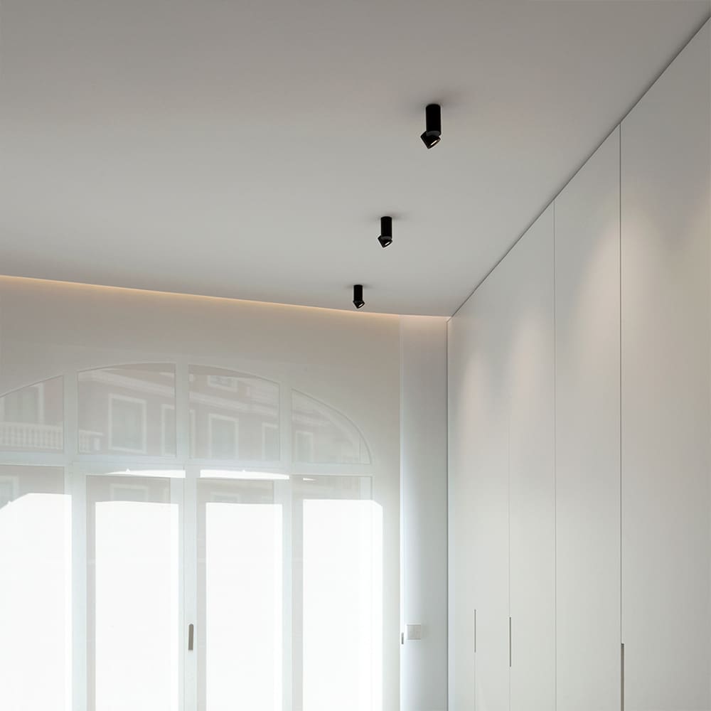 IO Surface by Arkoslight is a miniature LED spotlight, designed to deliver subtle yet impactful accent lighting. Its ultra-compact body—small enough to fit in the palm of your hand—makes it ideal for use in display cases, shop windows, museum exhibits, and compact spaces, where minimal visual intrusion is key. Despite its size, IO Surface offers high-level performance and full orientation flexibility, including rotation and tilt, just like its track-mounted counterpart. The surface-mounted version allows for standalone installation while maintaining all the features and precision of the IO family. Available in white or black finishes, it is perfect for projects that demand elegant design, technical excellence, and subtle architectural integration.