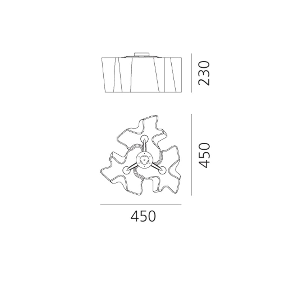 Light source: LED 31,5W E27 (not included) – 2906 lumens – CRI=80 – 220-240V – Dimmerabile – IP20. Dimensions: L 45 cm W 45 cm H 23 cm