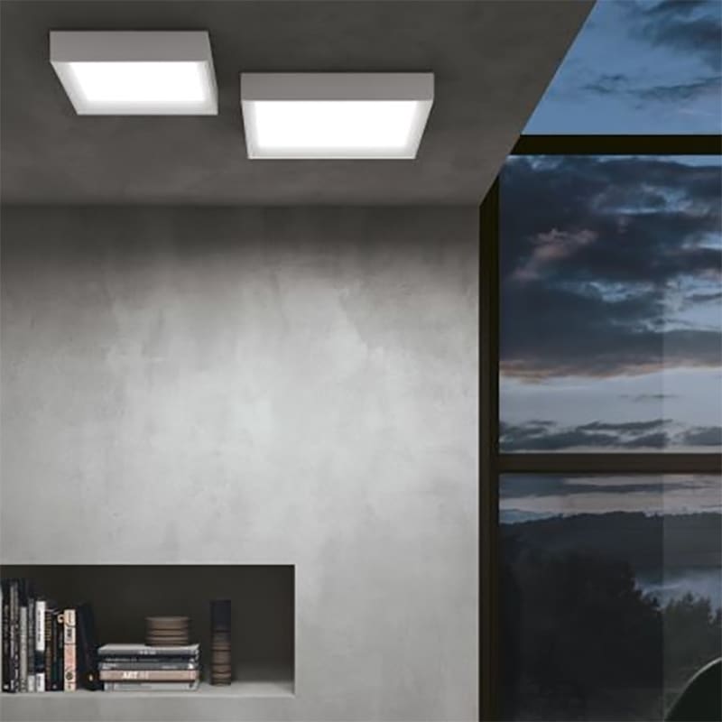 Tara Q is a square wall or ceiling lamp with a wrinkle white or black painted aluminum frame and a polymethylmethacrylate diffuser to shield an integrated LED source, for powerful lighting but at the same time comfortable to the eye. The recessed edge aesthetically enhances Tara Q, for greater refinement and surprising attention to detail. Available ON-OFF or dimmable.